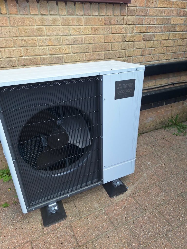 Mitsubishi air source heat pump in a 1945 - 1964 property