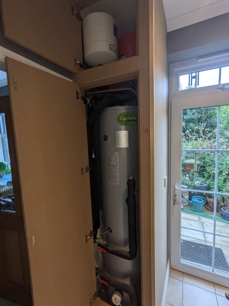There was a slight hiccough on day 1 as the suggested location for the cylinder wasn't going to work. Our initial suggestion was to site in where the old boiler had been but when the survey was conducted, we were told there was not enough space to accommodate a cylinder, and they had suggested putting it in one of the bedrooms. On closer examination, the contractors realised this wouldn't work because of the plumbing setup. A somewhat smaller cylinder could be fitted at our preferred location (where the old boiler had been).
