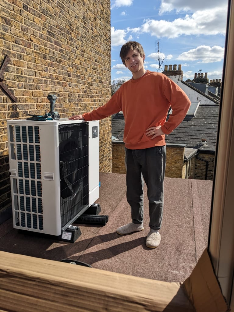 I'm Robert - I live here with Francesca and our baby Herb. My heat pump enthusiasm got serious when we realised how expensive our electric boiler was in winter.
