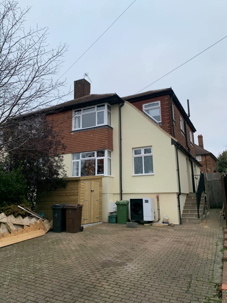 Mitsubishi air source heat pump in a 1920 - 1944 property