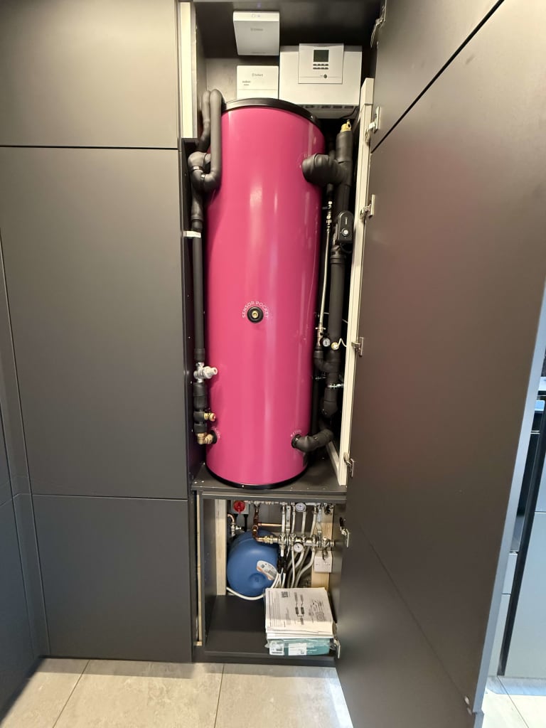 - Plant room all squeezed into the same space the existing gas boiler took up!